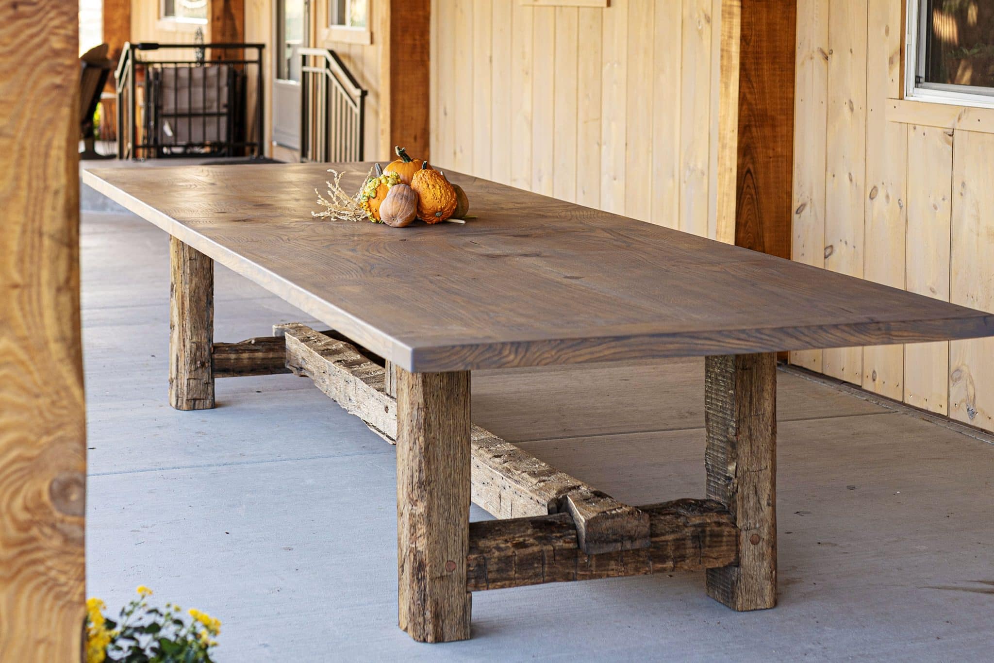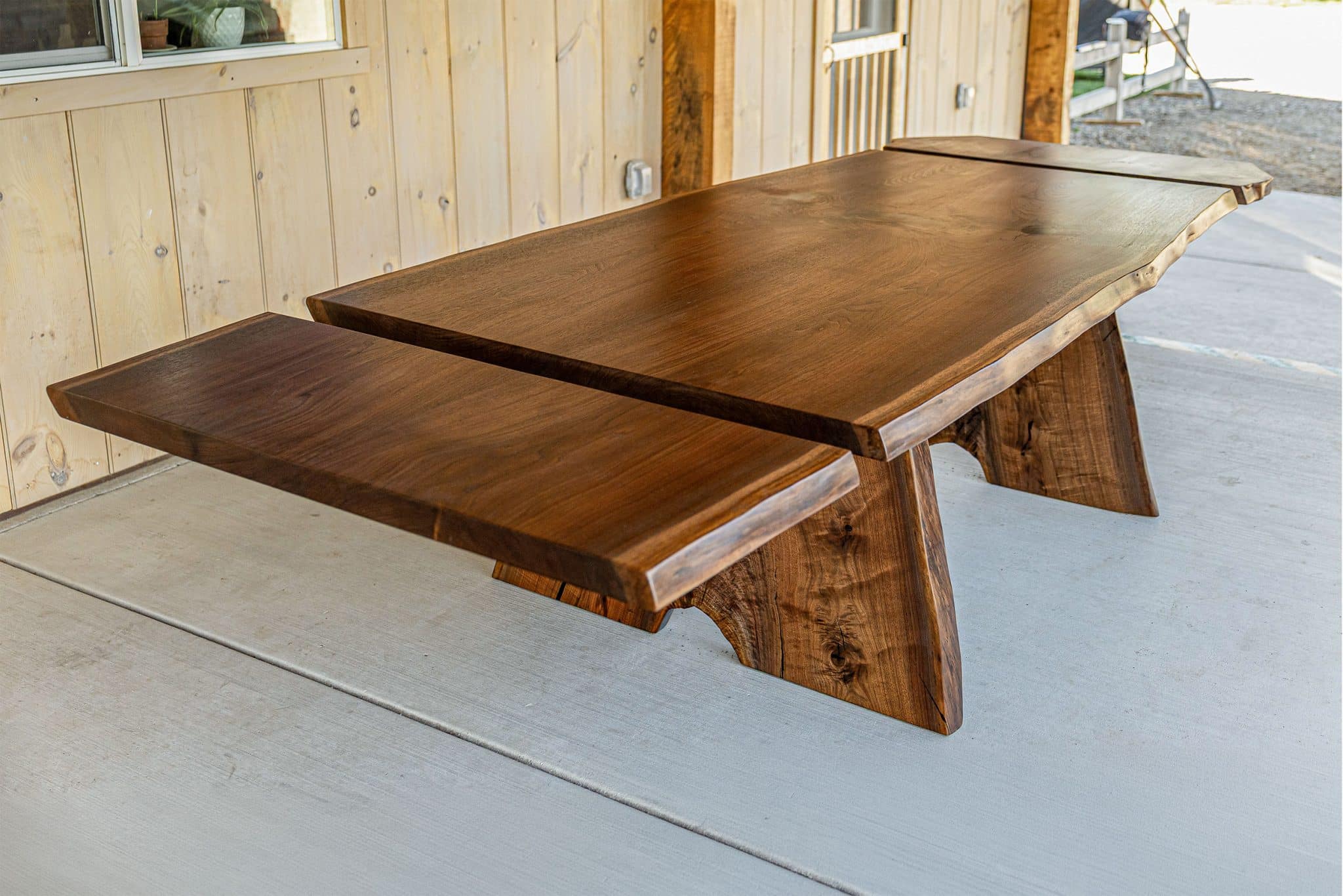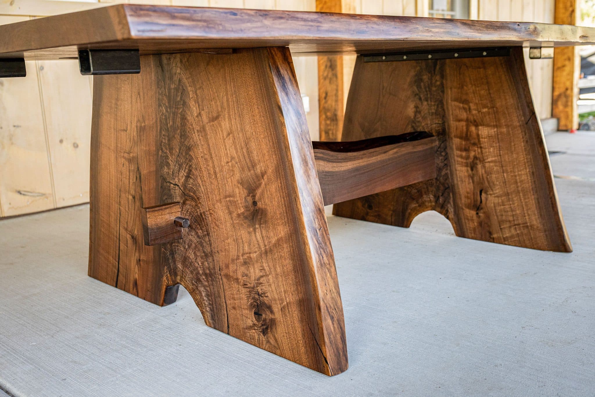 River Valley Woodworks has several table options. We can take local old wood, Douglas Fir butcher-block type slabs, or live edge hardwood slabs and make tables on a wooden or steel structure. We can also make benches to go with the tables. If you’re interested in building your own table with one of our slabs, read how here.